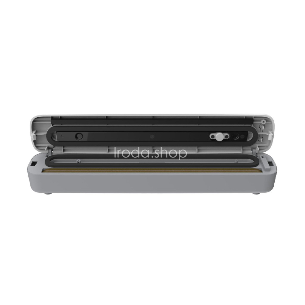A vákuumcsomagoló mérete mindössze 380 × 68 × 54 mm, így kis helyen is elfér, könnyen tárolható és bárhová elhelyezhető a konyhában. A készülékhez tartozik 10 darab bordázott zacskó, valamint egy vákuumtartály-adapter, amely lehetővé teszi a külön vákuumtartályok csatlakoztatását is – ideális például levesek, mártások vagy előre elkészített ételek légmentes tárolására.