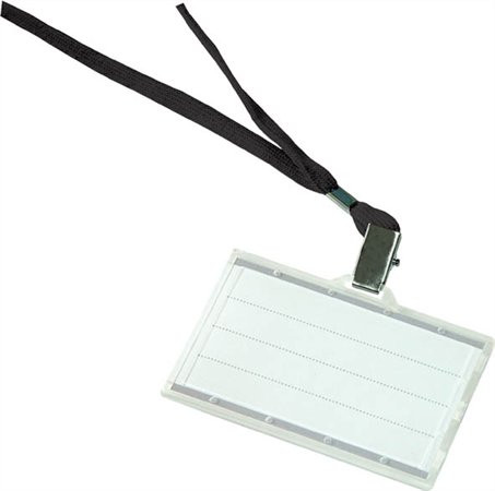 Rendezvények, oktatások elmaradhatatlan kelléke! -merev, átlátszó műanyagból készül -önzáródó csiptető, fekete nyakba akasztható szalag -a szalag hossza kb 51 cm, szélessége 9 mm -hátul ovális kiszedőrés a könnyebb kezelhetőség érdekében -a névjegytartó egy üres betétlapot is tartalmaz -mérete: 88 x 54 mm