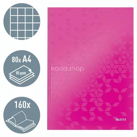 Beíró, A4, kockás, 80 lap, keményfedeles, LEITZ "Wow", rózsaszín