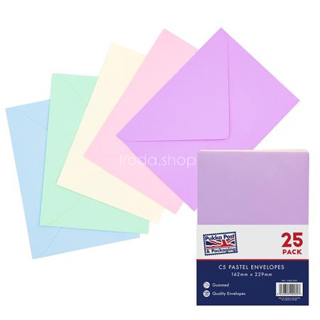 Boríték, C5, enyvezett, PUKKA PAD " Pastel", vegyes színek