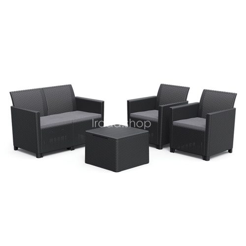Claire 4 személyes kerti bútor garnitúra párnatartós asztallal grafit