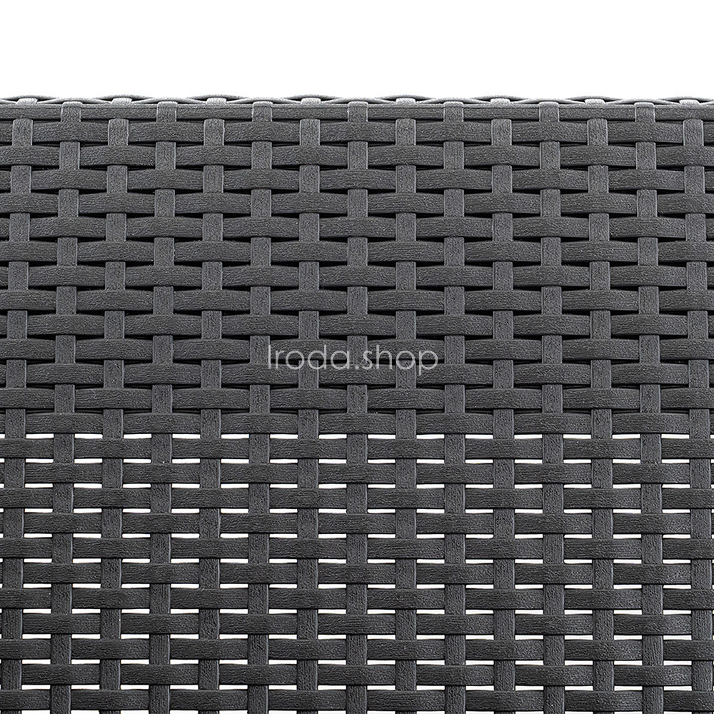A garnitúra sima karfái, kényelmes háttámlái és a csomagban található puha párnák köszönhetően minden adott a kikapcsolódáshoz. Az elegáns grafit színű rattan hatású anyag nem csupán esztétikus, hanem rendkívül tartós és könnyen tisztítható is.