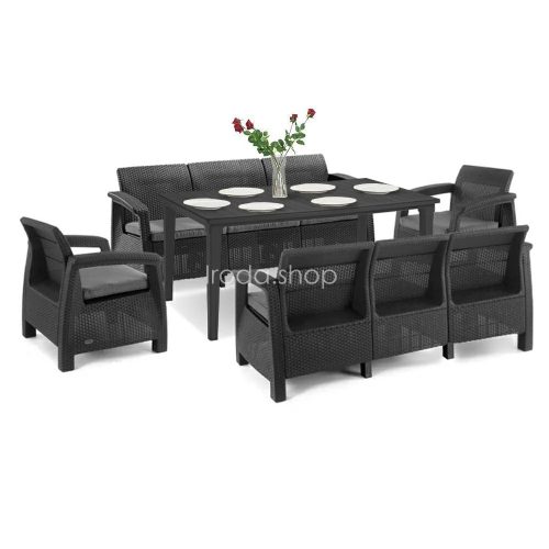 Első pillantásra úgy tünhet, hogy a bútorok rattanból készültek, de valójában egy kiváló minőségű müanyagból hozták létre, amely ellneáll a szélsőséges időjárási viszonyoknak. Lapos párnák, széles kartámaszok és kontúros háttámlák biztosítják a székek és kanapék kényelmét. A bútorgyártó a Curver márka, amely kiváló minőségű kerti bútorokat készít fröccsöntött műanyagból. Egy csoportban működik a közismert és népszerű Keter és Allibert márkákkal Lengyelországban.