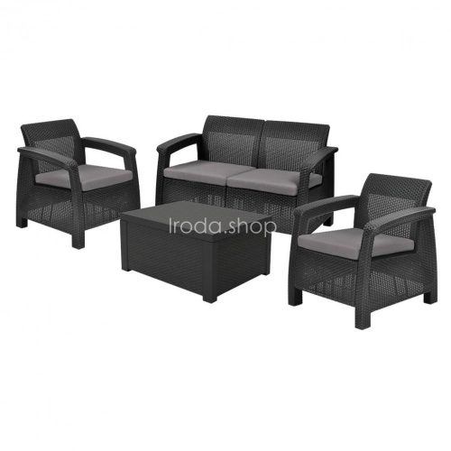 Corfu Box set kerti bútor garnitúra, grafit színben, világos szürke párnával