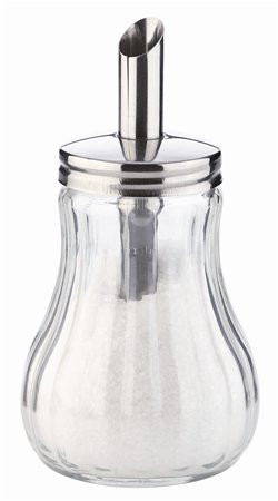 Üveg cukorszóró, rozsdamentes fém adagoló fejjel.