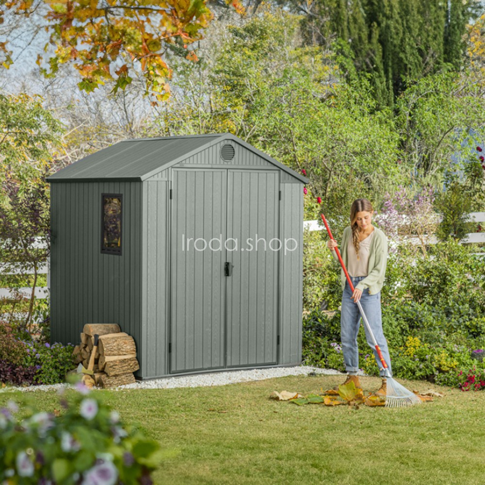 Méretei: 190 x 182 x 221 cm, ami ideális teret biztosít a kerti szerszámok, kerti bútorok, vagy akár a kerékpárok tárolására. Ezek a méretek tökéletesen illeszkednek a legtöbb kertbe, anélkül, hogy túl nagy helyet foglalnának.