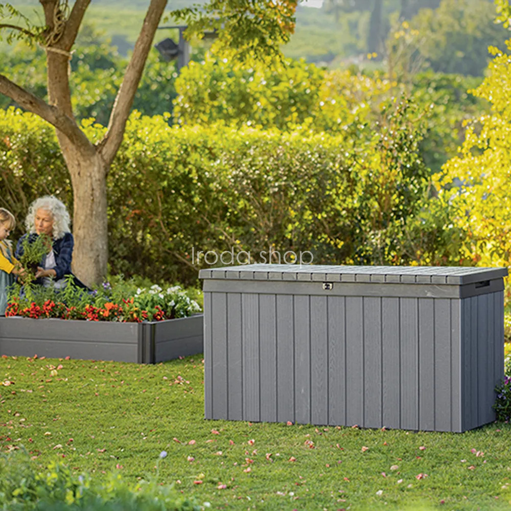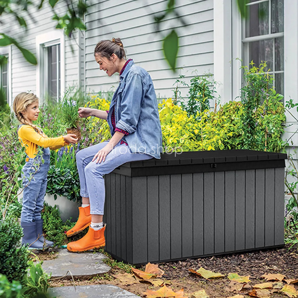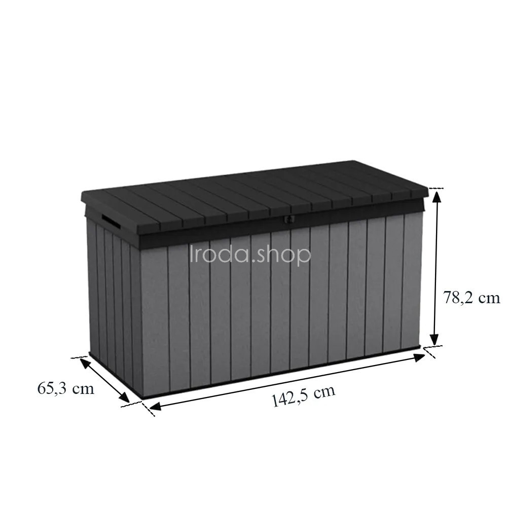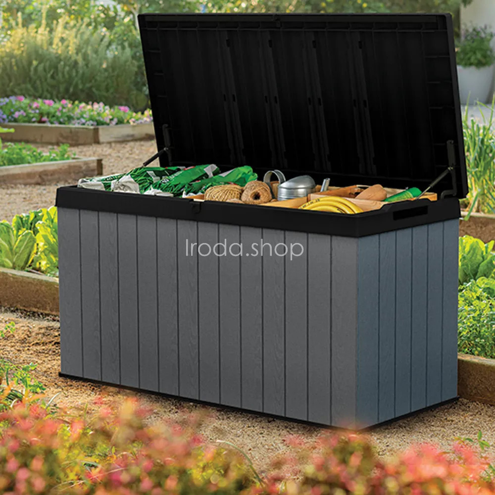 A funkcionális és tágas , 570 liter űrtartalmú kerti tárolót a neves Keter cég gyártotta, amelynek nagy tapasztalata van a műanyagból készült kerti felszerelések létrehozásában. A kerti tároló tökéletes hely a kerti székek, játékok vagy egyéb kerti felszerelések párnáinak tárolására. Noha fa kerti doboznak tűnik , ez csak egy stilisztikai eljárás, amelyet a gyártási folyamat során hajtanak végre. A Keter Darwin kerti tároló teljes egészében erős és tartós műanyagból készül. Ennek köszönhetően vízálló, ellenáll az UV sugárzásnak és környezetbarát is. A Keter termékek előállításához szükséges anyagok nagy részét újrahasznosításból nyerik.