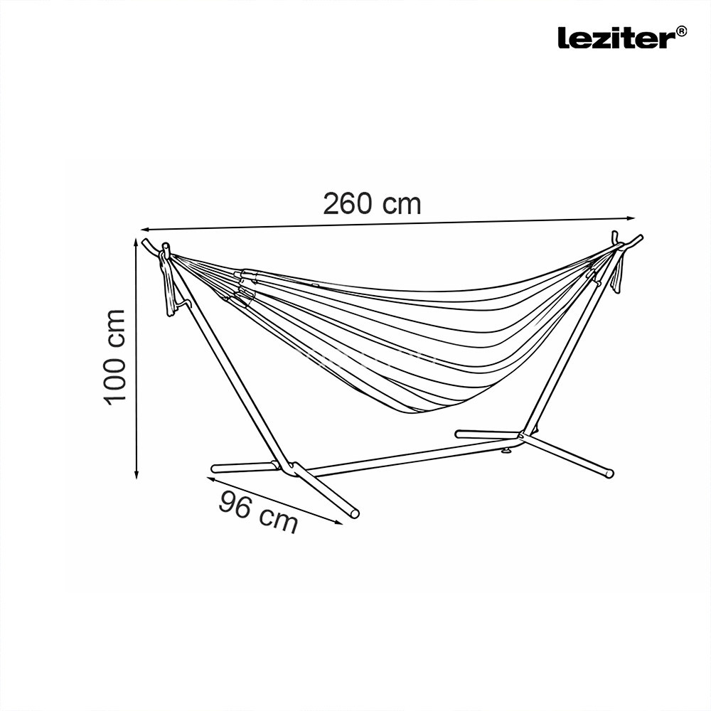 A függőágy csíkozott, bézs árnyalatú felület visszafogott megjelenést ad a függőágynak, amely könnyen illeszkedik különböző kerti és teraszos környezetekbe. A fekvőfelület kialakítása pihenéshez és lazításhoz használható.
