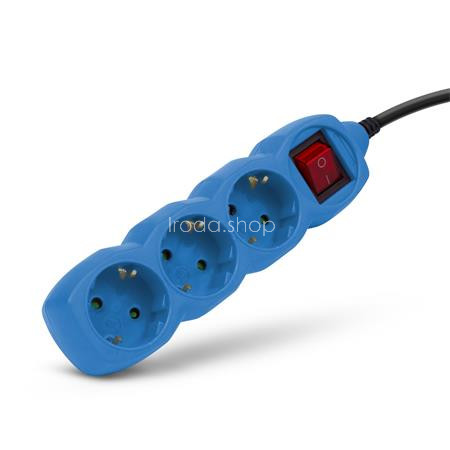 Elosztósor, 3 aljzat, 1,5 m, kapcsolóval, ENTAC, kék