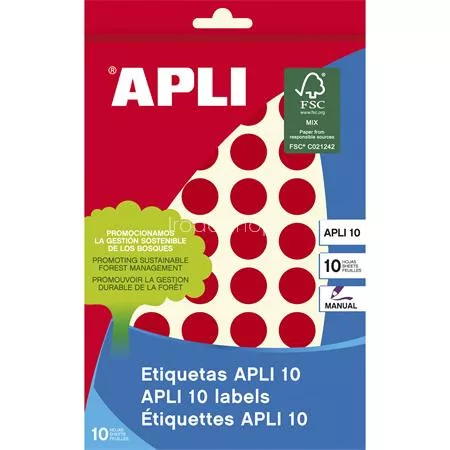 Etikett, 16 mm kör, kézzel írható, színes, APLI, piros, 432 etikett/csomag