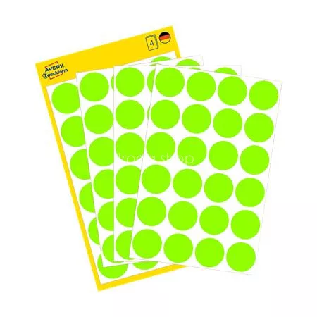 Etikett, 18 mm, kör, AVERY ZWECKFORM, neon zöld, 96 etikett/csomag