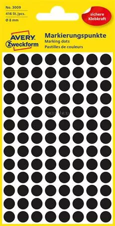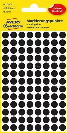 Etikett, 8 mm, kör, AVERY ZWECKFORM, fekete, 416 etikett/csomag