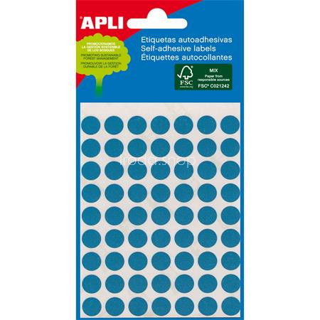 Etikett, 8 mm kör, kézzel írható, színes, APLI, kék, 288 etikett/csomag