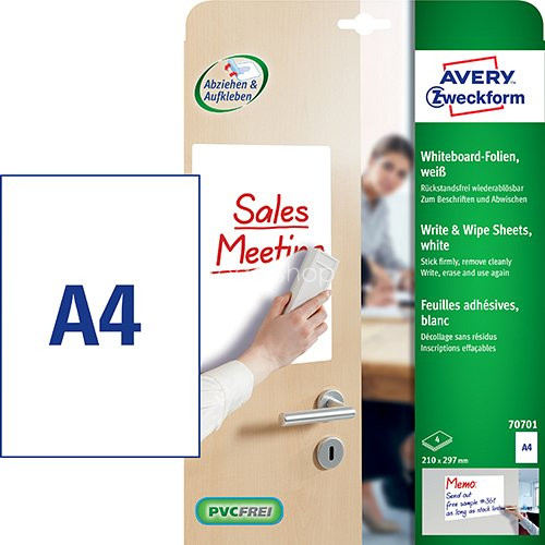 Etikett címke speciális 70701 írható és szárazon törölhető öntapadó fólia A4 Avery