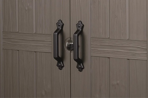 A Keter Factor 8x8 dupla íves ajtóval van ellátva, 138,5 cm széles. Ez megkönnyíti a belépést a belső térbe, és lehetővé teszi a nagyobb méretű eszközök tárolását. Az ajtónak retesze van a bezárásához.
