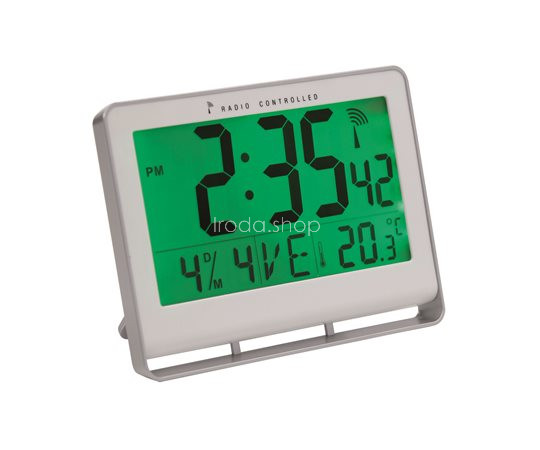Falióra, rádióvezérlésű, LCD kijelzős, 22x20 cm, ALBA "Horlcdneo", ezüst