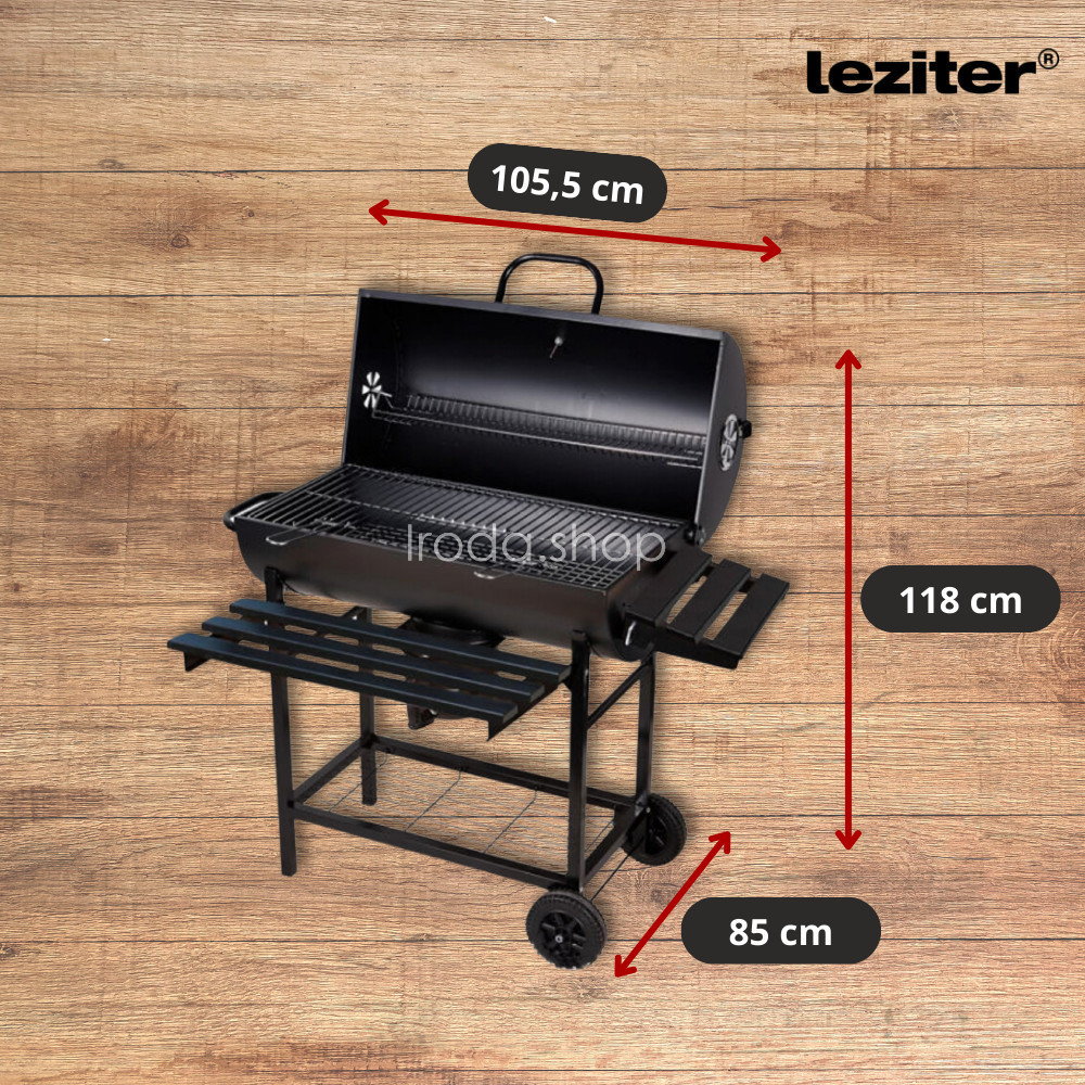 • Alsó rácsos polc – tárolóhely a faszénnek vagy egyéb grillező eszközöknek