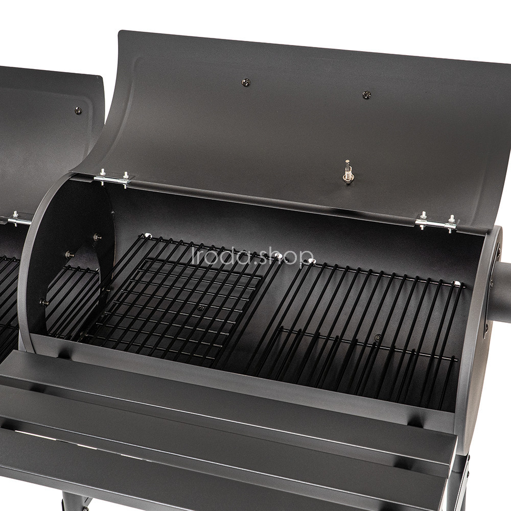 A dupla kamrás kialakítás lehetővé teszi a külön grillezést és füstölést. A füstkamrából áramló füst egyenletesen járja át az ételt, amely így gazdagabb ízvilágot kap. Az acélkonstrukció és a precíz hőmérséklet-szabályozás biztosítja a tökéletes BBQ élményt.
