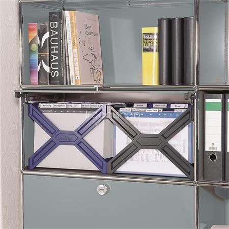 Erős, rakásolható függőmappatartó, 30 függőmappa tárolására alkalmas.
