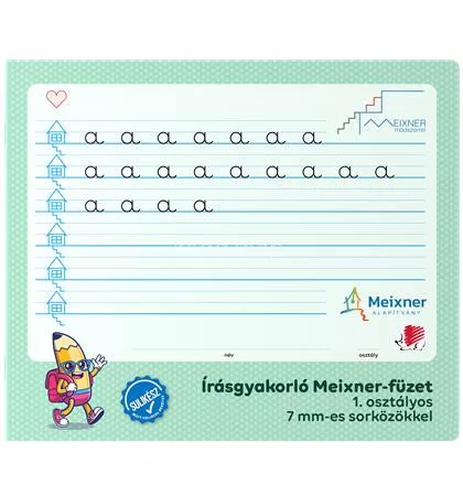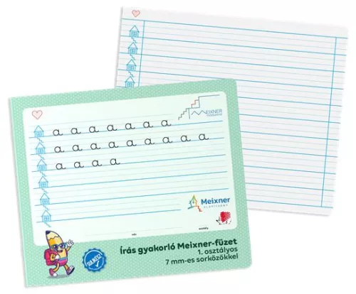 Írás gyakorló füzet az 1. osztályosok számára, amely a Meixner Alapítvány együttműködésével és ajánlásával jött létre. Speciális vonalazású és kialakítású füzet alkalmas a Meixner-féle írás tanulás elsajátítására és gyakorlására.