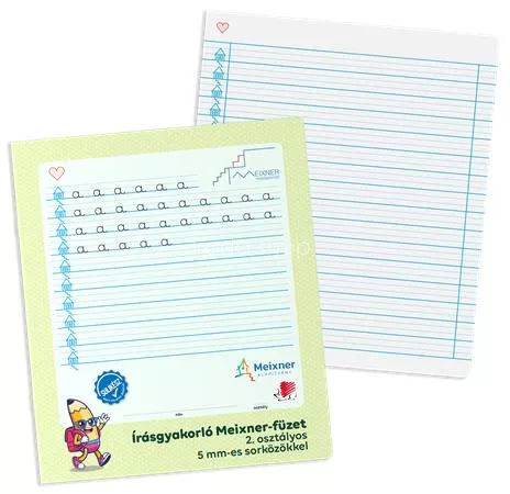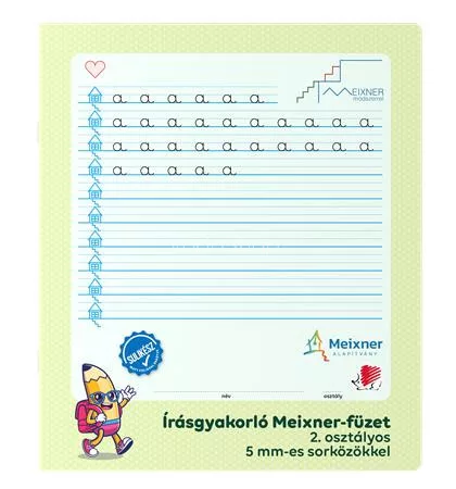 Írás gyakorló füzet a 2. osztályosok számára, amely a Meixner Alapítvány együttműködésével és ajánlásával jött létre. Speciális vonalazású és kialakítású füzet alkalmas a Meixner-féle írás tanulás elsajátítására és gyakorlására.