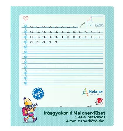 Írás gyakorló füzet a 3. és 4. osztályosok számára, amely a Meixner Alapítvány együttműködésével és ajánlásával jött létre. Speciális vonalazású és kialakítású füzet alkalmas a Meixner-féle írás tanulás elsajátítására és gyakorlására.