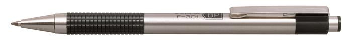 Golyóstoll, 0,24 mm, nyomógombos, rozsdamentes acél, fekete tolltest, ZEBRA "F-301", kék