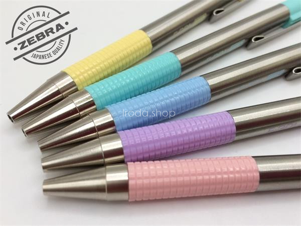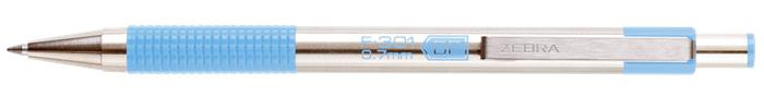 Golyóstoll, 0,24 mm, nyomógombos, rozsdamentes acél, pasztellkék tolltest, ZEBRA "F-301", kék