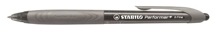 Golyóstoll, 0,35 mm, nyomógombos, szürke tolltest, STABILO "Performer+", fekete