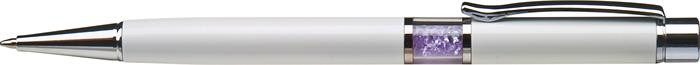 Golyóstoll, fehér, középen orgonalila SWAROVSKI® kristállyal töltve, 14cm, ART CRYSTELLA®