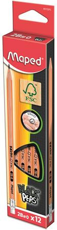 Grafitceruza radírral, 2B, háromszögletű, MAPED "Black'Peps"