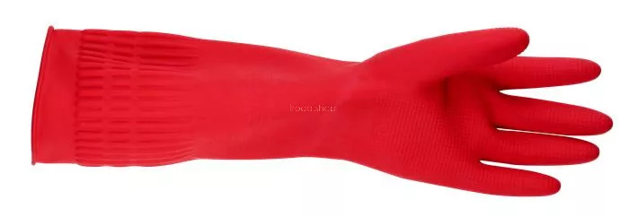 Gumikesztyű, háztartási, latex, extra hosszú, 38 cm, S méret, BONUS, piros