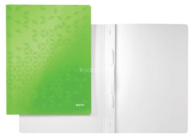 Gyorsfűző, laminált karton, A4, LEITZ "Wow", zöld