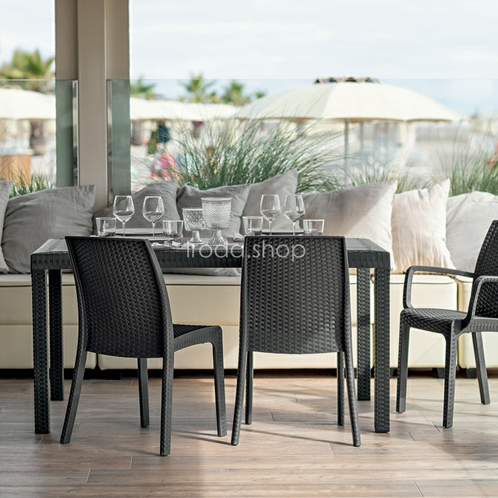 Olaszországban készült ez a grafit színű, kényelmes és elegáns, 150x 90x 74 cm-es négyszögletes magas rattan asztal. Időjárás álló műanyagból készült, medence mellé is tehető. Időtálló bútordarab, évek múlva is olyan lesz, mint ha még új lenne. Könnyen összeszerelhető, nincs szükség szakmai tudáshoz hozzá.