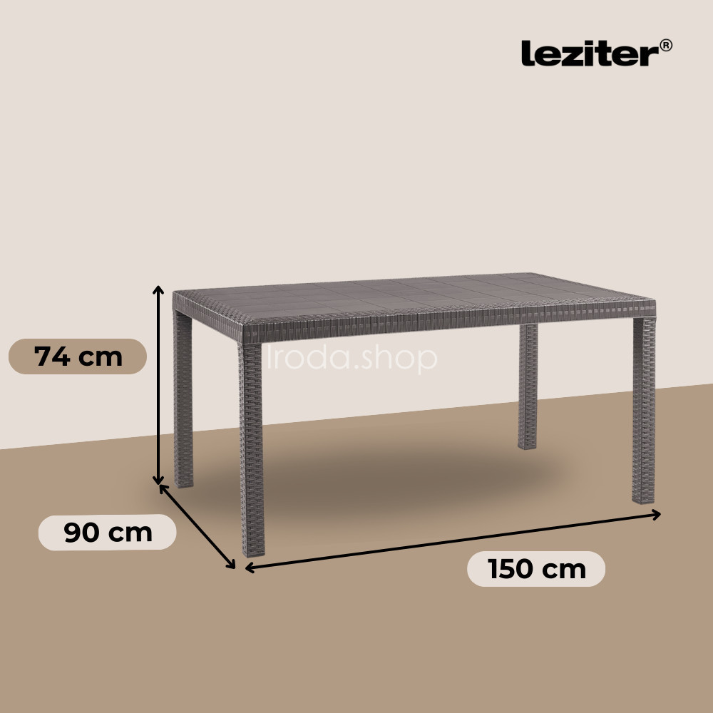 Rattan hatású kialakítása eleganciát sugároz, miközben robusztus műanyag anyaga biztosítja a hosszú élettartamot. A 150×90x74 cm-es méret lehetővé teszi, hogy akár hatan is kényelmesen elférjetek körülötte, legyen szó egy nyugodt reggeliről a kertben vagy egy nagyobb baráti összejövetelről.