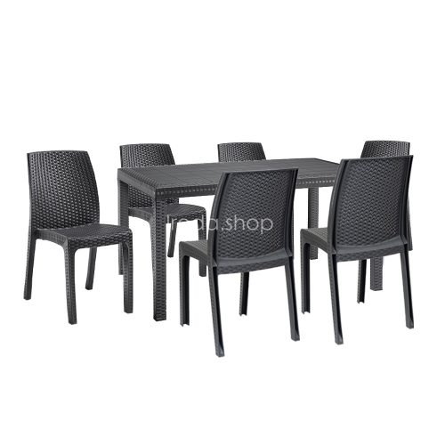 Olaszországban készült ez a grafit színű, kényelmes és elegáns bútor szett. Hat 47x 59x 86 cm-es széket és egy 150x 90x 74 cm-es négyszögletes magas asztalt foglal magába. Méretén és kényelmén kívül kedvező lehet, hogy összeszerelése nem igényel szakmai tudást és könnyen mozgatható, így mindig oda teheted ahol éppen szükséged van rá.