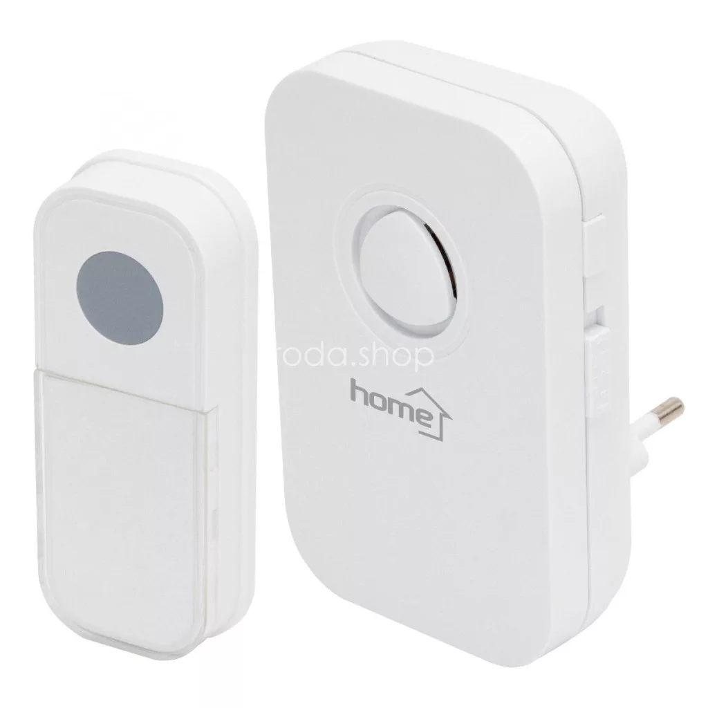 Home DB 1031AC vezeték nélküli csengő, 100m hatótáv, 3-fokozatú hangerő, 36 dallam, 8 párosítható nyomógomb, zavarvédett, 230V-os tápellátás