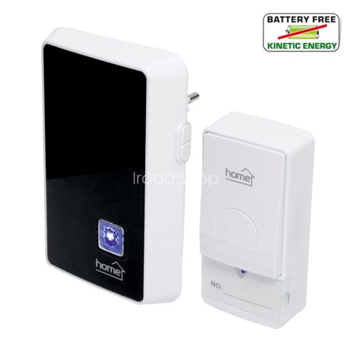 Home DBK1010AC vezeték nélküli csengő, elem nélküli, 100m hatótáv, 20 dallam, 3-fokozatú hangerő, kék LED, kinetikus nyomógomb, 230V-os tápellátás