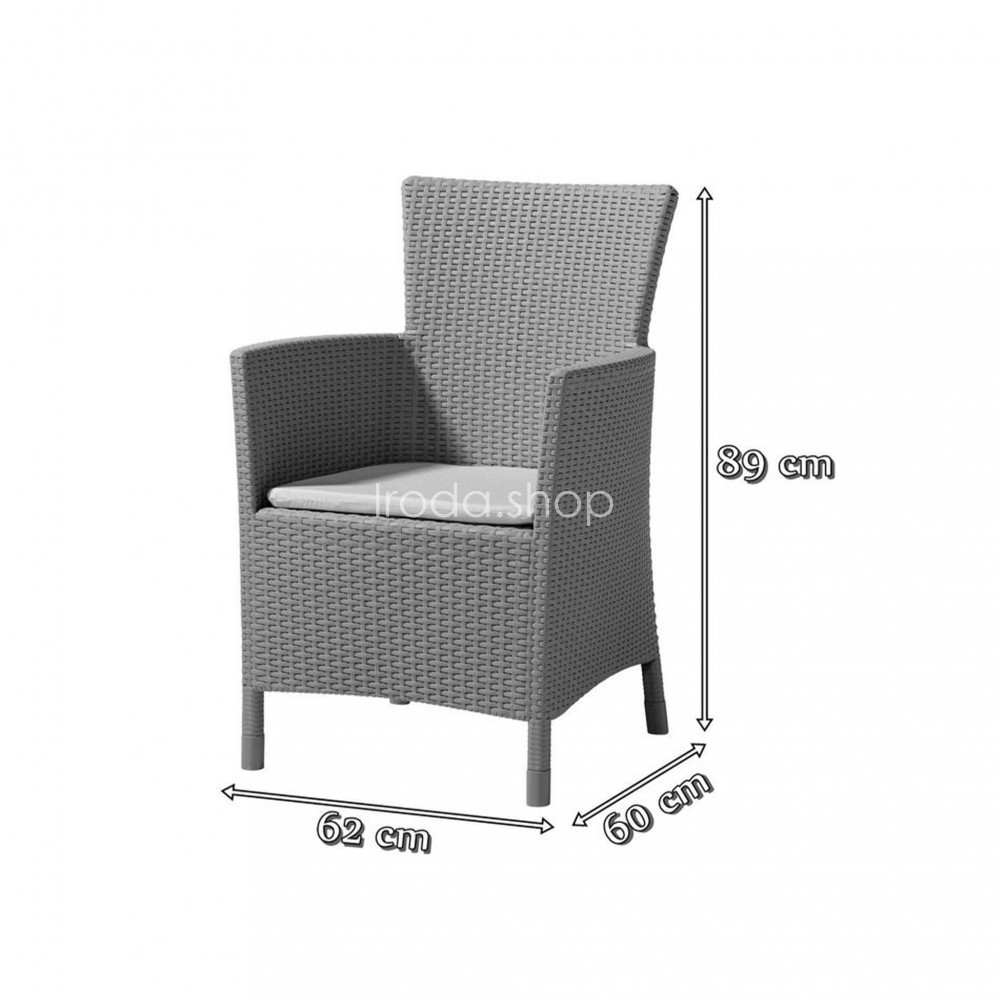 Az elegáns Rattan Style Iowa DC kerti fotel elegáns és sokoldalú kiegészítő, otthonához, kertjéhez vagy teraszához. A fotel nagyon tartós és megfelel a legigényesebb emberek szabványainak is. A bútorokat az Allibert gyártotta, amely egy csoportban működik olyan vállalatokkal, mint például a Keter vagy a Curver, akik magas szintű műanyag berendezéseket kínálnak