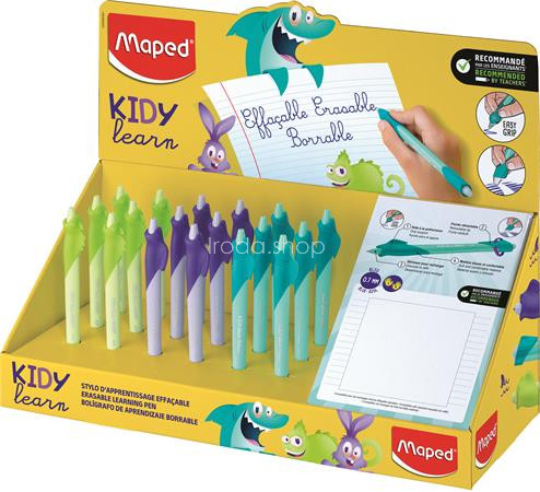Írástanuló rollertoll display, 0,7 mm, radírozható, MAPED "KIDY Learn MAGIC", vegyes színek