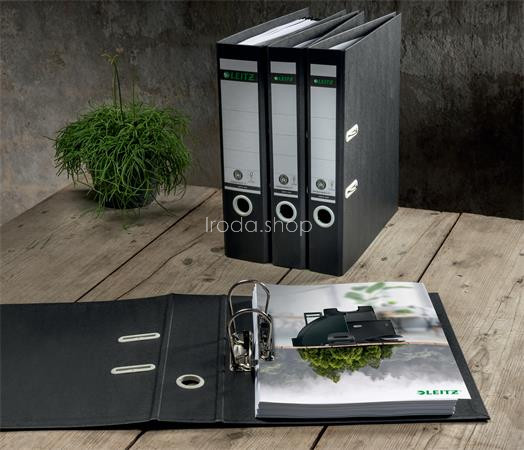 Iratrendező, 80 mm, A4, karton, újrahasznosított, LEITZ "180 Recycle", fekete