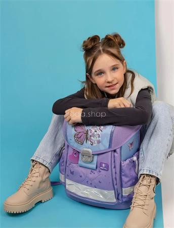 Iskolatáska, fémcsat, BELMIL "Classy Purple Blue Butterfly", pillangó