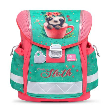Iskolatáska, fémcsat, BELMIL "Classy Cute sloth", zöld-rózsaszín, lajhár
