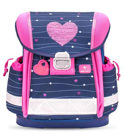 Iskolatáska, fémcsat, BELMIL "Classy Simple Hearts", rózsaszín szív