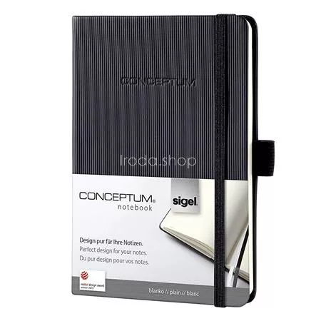 A keményfedeles "Conceptum", jegyzetfüzeteket sajátossága a klasszikus fekete, egyben modern megjelenésű "Softwave" borító. A sima, vonalas vagy kockás lapok között mindenki megtalálja a hozzá illőt. Praktikus tablet formátumban (180x240 mm) is elérhető. gumiszalagos záródás oldalán tolltartóval belül sarokzseb és archiválózseb névjegykártyatartóval dupla jelölőszalag és oldalszámozás hátulján tartalomjegyzék 194 oldal 20 perforált lap 80 g/m2 Gyártó/első EU forgalmazó elérhetősége: SIGEL GmbH Baeumenheimer Strasse 10, 86690 Mertingen, Germany sandra.geist@sigel.de www.sigel-office.com