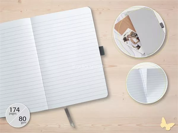 Gyönyörű jegyzetfüzet számos apró, praktikus részlettel.