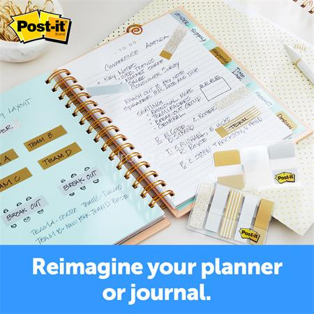 Jelölőcímke, műanyag, 5x20 lap, 11,9x43,2 mm, 3M POSTIT, fémes nyomatok