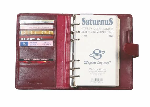 Kalendárium, gyűrűs, betétlapokkal, "M", marhabőr, SATURNUS, "212", barna