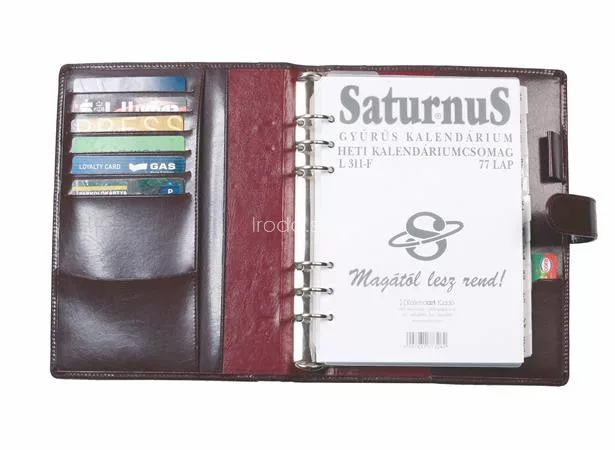 Kalendárium, gyűrűs, betétlapokkal, "M", újrahasznosított bőr, SATURNUS, "418", barna