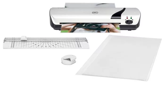 A készlet tartalmaz egy könnyű és kompakt GBC Inspire+ A4-es laminálógépet, 1x sarokvágót az éles szélek levágásához, 1x papírvágót a dokumentumok kívánt méretre igazításához és egy 5x A4 méretű laminálófóliát tartalmazó kezdőcsomagot (2 x 75 mikron).